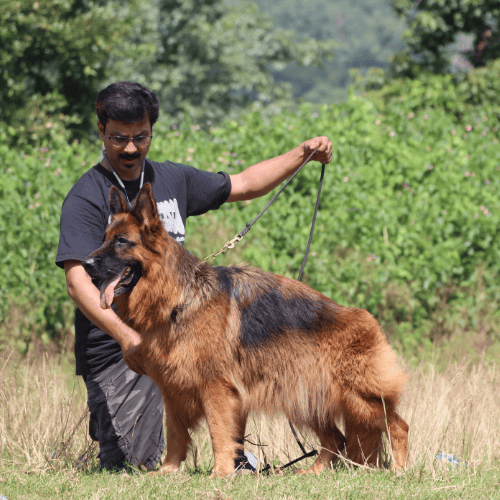 Aaihita possesses the hallmark traits of a true German Shepherd — intelligence, loyalty, and elegance. Her flowing coat adds to her regal appearance, perfectly complementing her confident gait and attentive expression. Whether she’s showcasing her talents in the ring or being a loving companion at home, Aaihita continues to set a standard of excellence and beauty in the breed.